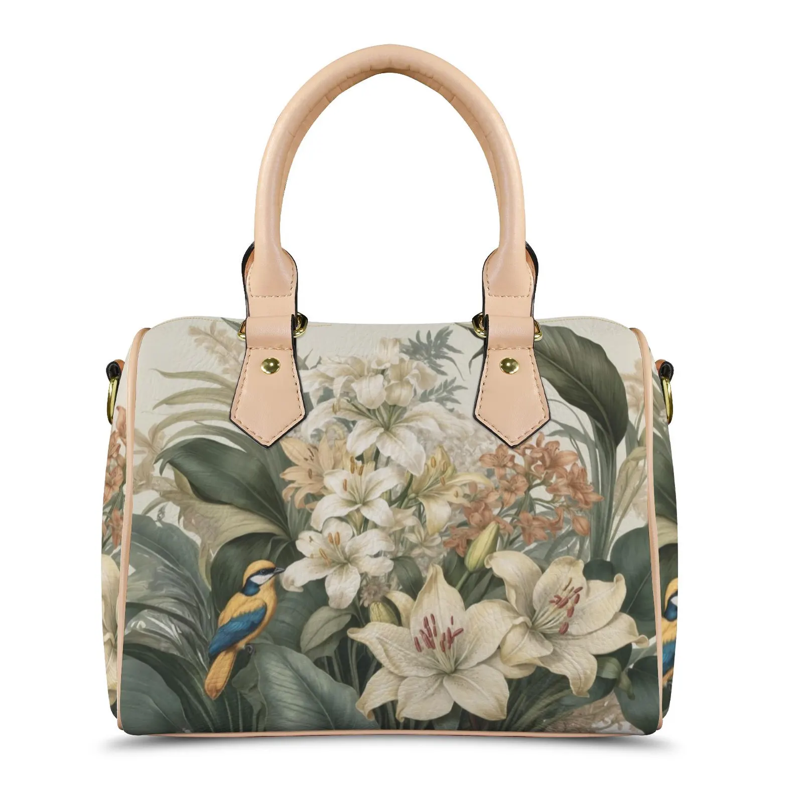 Step into a world of artistry and elegance with this Tropical Floral Bird Print Handbag, a statement accessory that blends timeless charm with nature-inspired beauty. Featuring a lush botanical design with blooming lilies, tropical leaves, and delicate birds in vivid colors, this handbag captures the essence of exotic gardens and vintage sophistication.